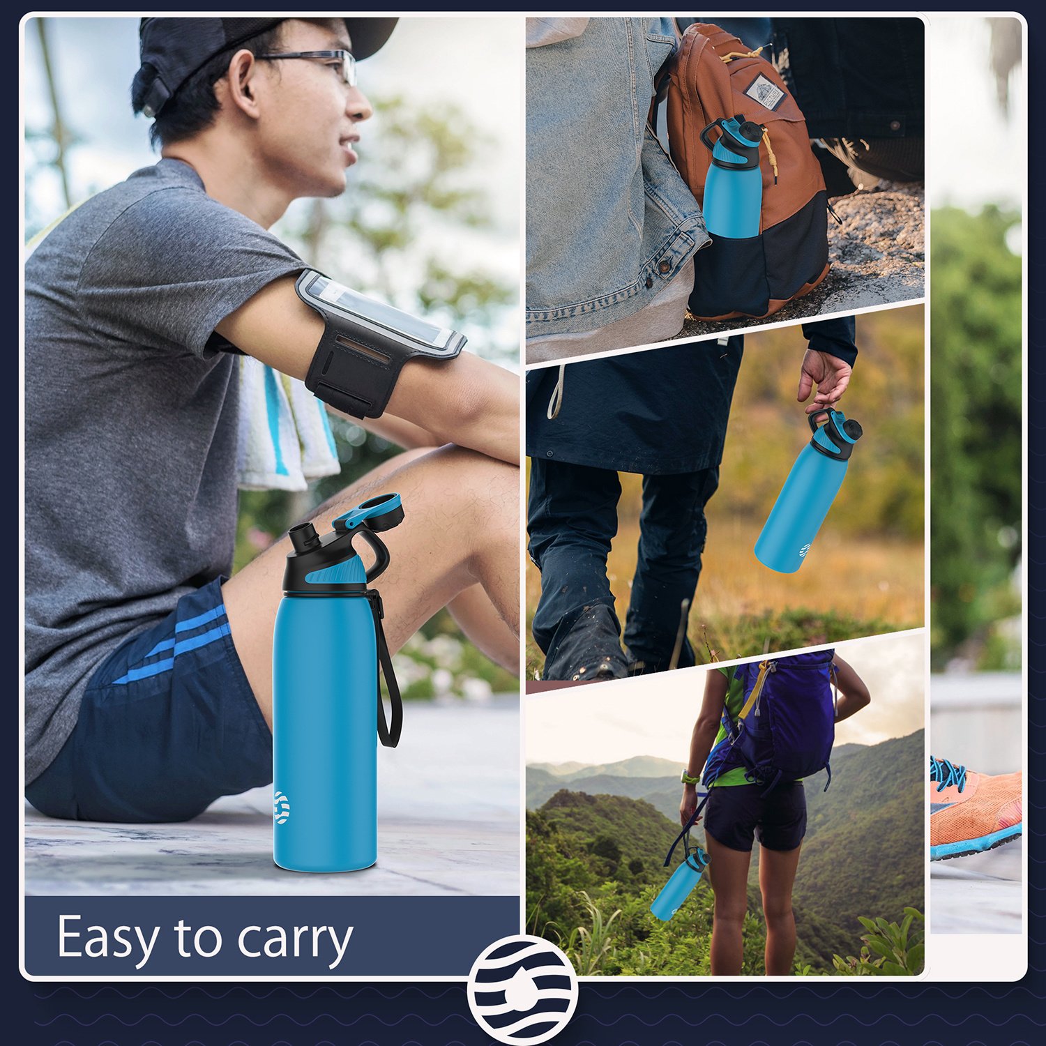 3.Insulated Water Bottle: Made from food-grade stainless steel, our BPA-free water bottle has a double wall design to keep drinks cold plus vacuum insulation & powder coating to keep it sweat-free & easy to grip.
