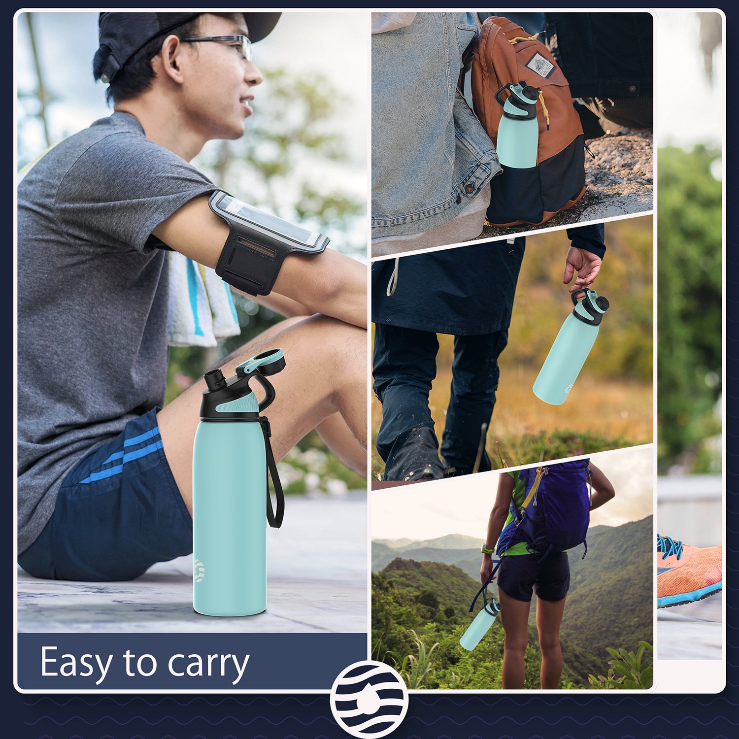 3.Insulated Water Bottle: Made from food-grade stainless steel, our BPA-free water bottle has a double wall design to keep drinks cold plus vacuum insulation & powder coating to keep it sweat-free & easy to grip.