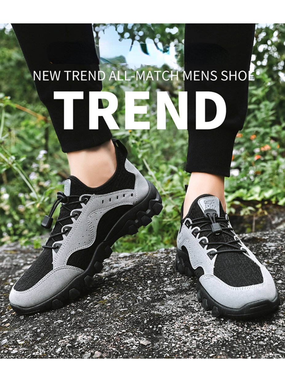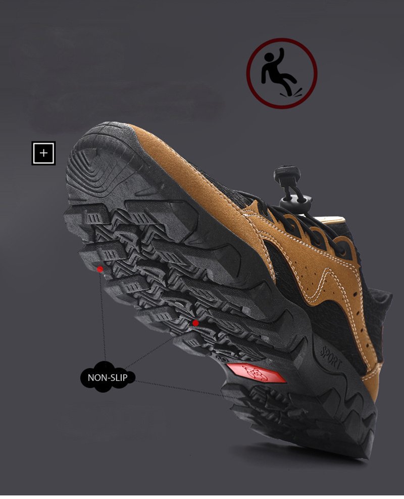 Home > Outdoor Low Tops Casual Sneakers Men Leather Surface Comfortable Non-slip Wear-resistant Slip-on Hiking Shoes Light Breathable