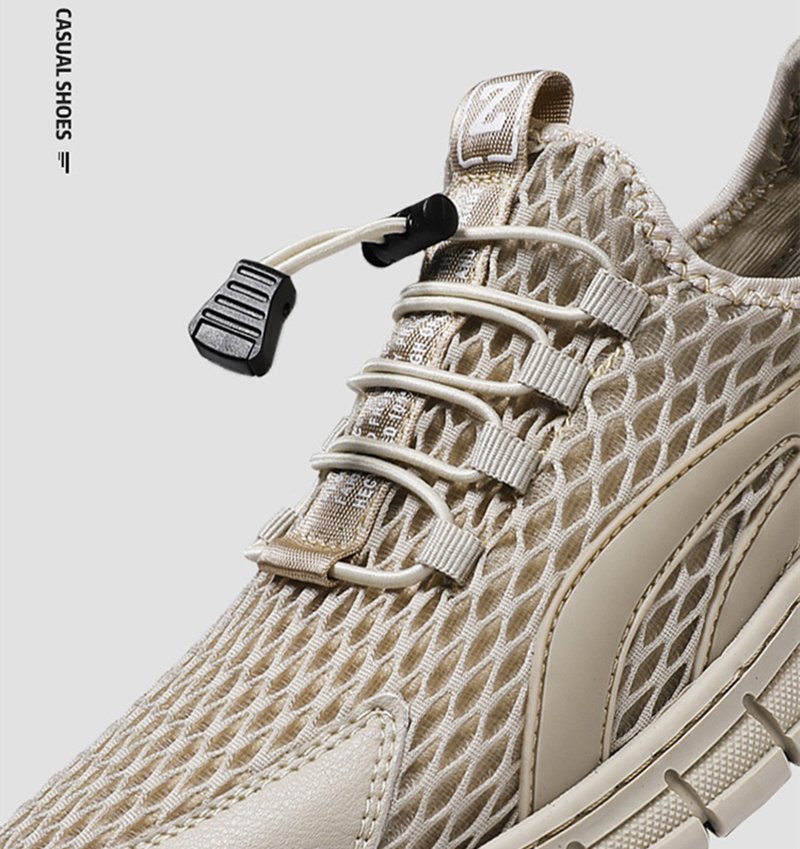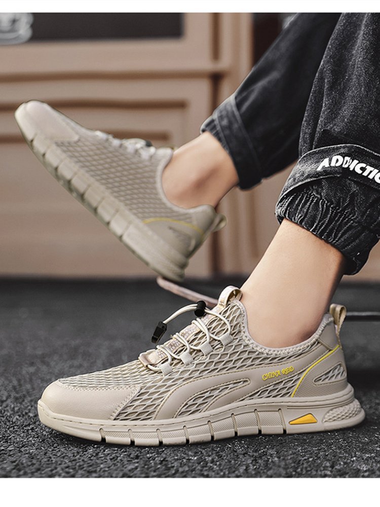 Home > Spring Summer Leather Mesh Casual Shoes Men Slip on Elastic Band Low Top Sneaker Hollow Round Toe Solid High Quality Breathable