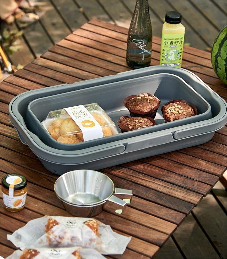 This is an outdoor camping folding storage box picnic waterproof picnic basket.Material: PP + TPRColor: Gray, coffee colorSize: 46.5 * 22.7 * 23.51. Folding does not take up space2. Multiple uses